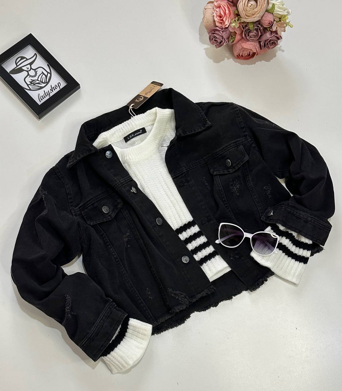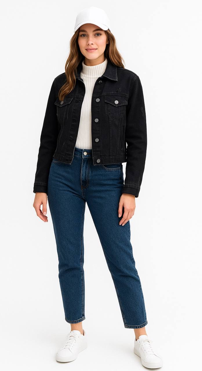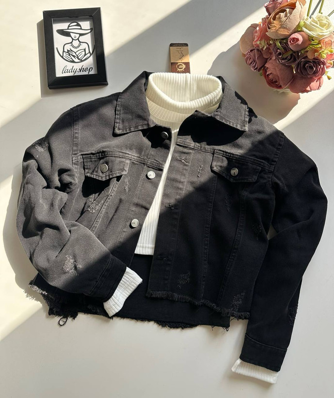 کراپ کت جین ذغالی زنانه کد 133