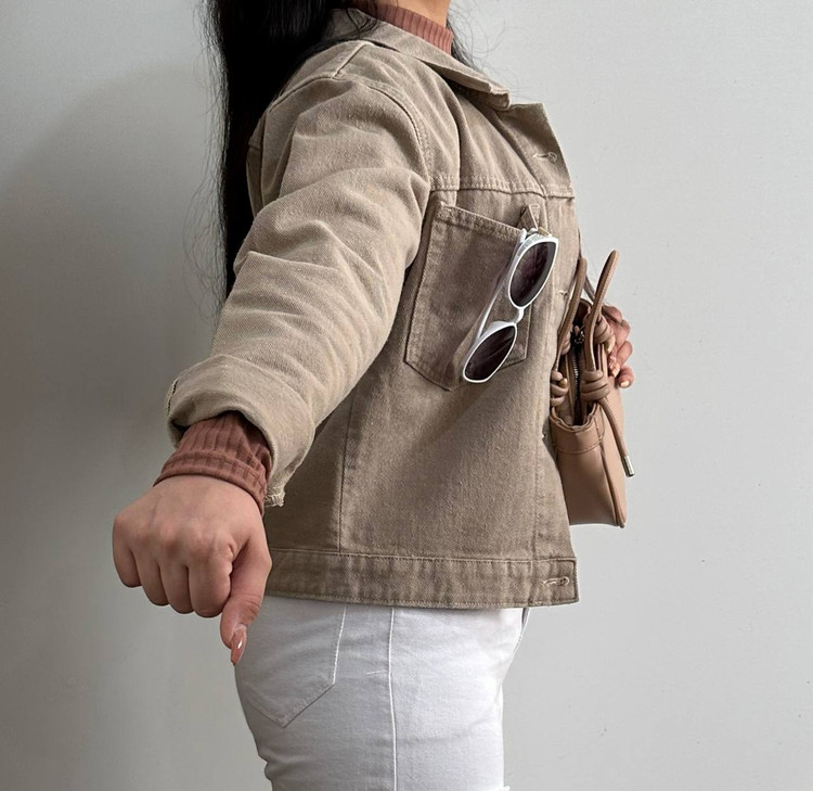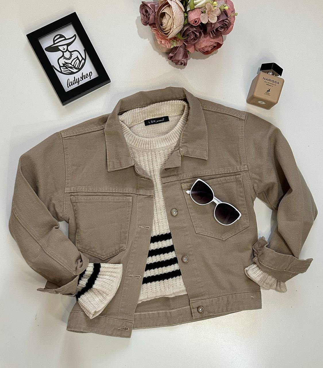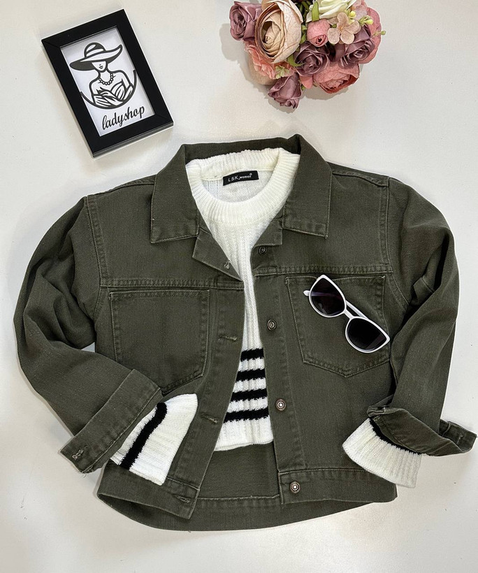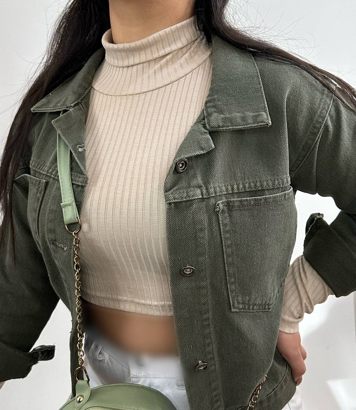کراپ کت جین کرم و یشمی زنانه کد 134